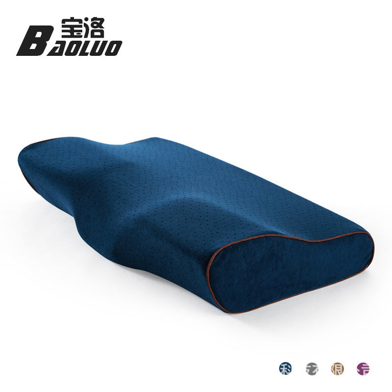 This butterfly-shaped memory foam pillow is designed to support the cervical spine and reduces neck strain during sleep. Its ergonomic contour follows the natural curve of the head, neck, and shoulders, making it suitable for back, side, and combination sleepers.